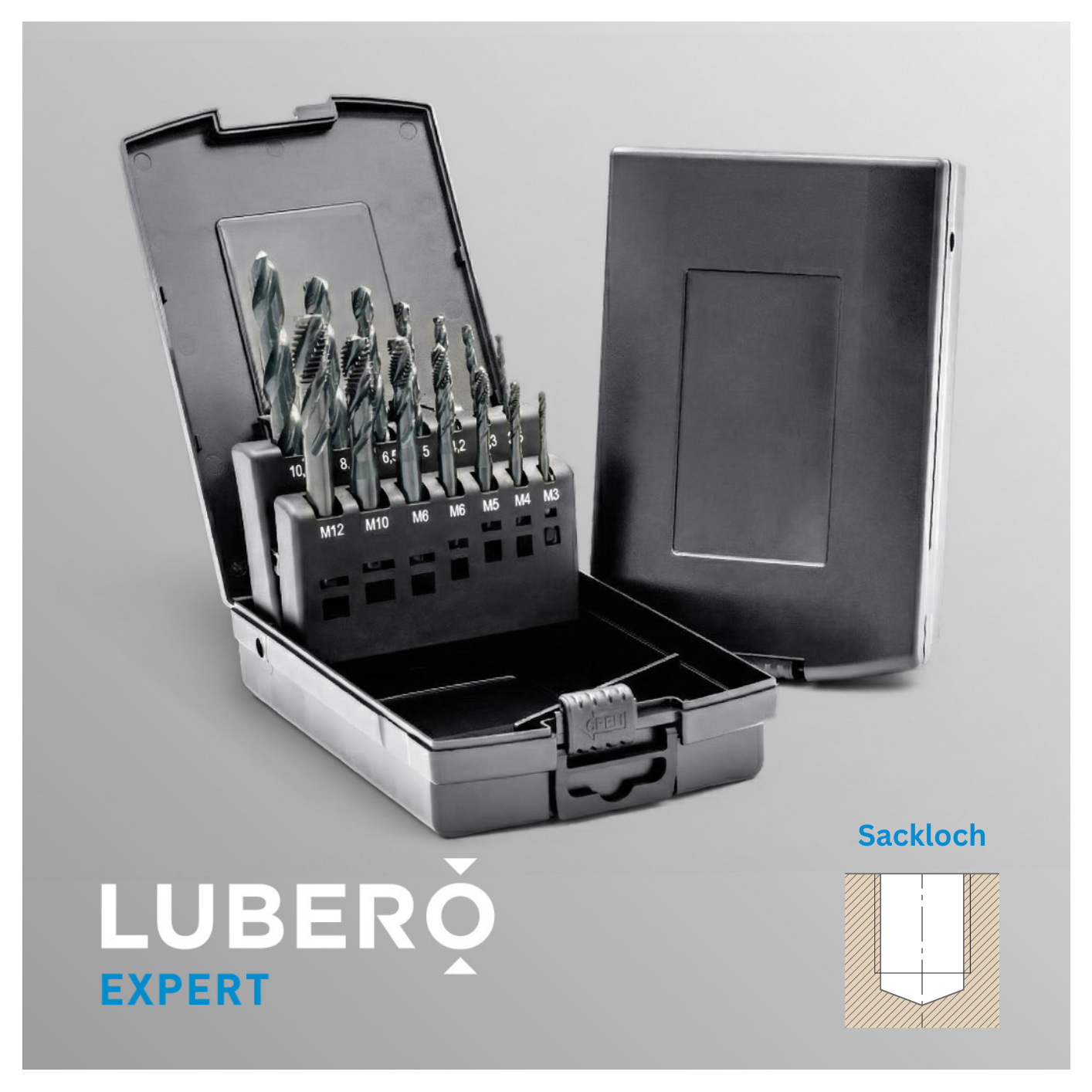 Lubero Sortimente bündeln Gewindebohrer, Spiralbohrer und Haltewerkzeuge in aufeinander abgestimmten Sets. Von der kompakten TriTap-Box für den mobilen Einsatz bis zum umfangreichen Holzkasten mit 6 Gewindenormen – alles ab Lager.